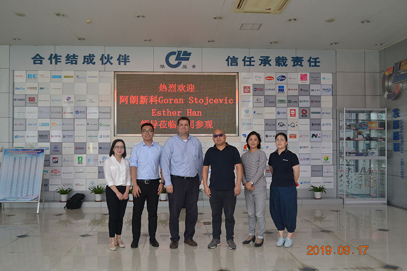 2019年9月17日,阿朗新科新加坡有限公司全球非輪胎產(chǎn)品經(jīng)理Goran Stojcevic、亞太區(qū)技術(shù)服務(wù)與應(yīng)用開發(fā)總監(jiān)Esther Han,以及中國(guó)區(qū)的技術(shù)經(jīng)理蒞臨華蘭參觀交流,由公司總經(jīng)理華一敏親自接待。