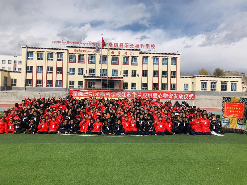 在青海玉樹囊謙縣,有一所陽光福利學(xué)校。這個學(xué)校的學(xué)生大多是當(dāng)?shù)氐墓聝?、單親家庭和特困生。公司華一敏總經(jīng)理在去年十月份一次偶然的機會中得知學(xué)校的學(xué)生因買不起冬裝在為即將來臨的寒冬發(fā)愁,他第一時間就以華蘭股份公司名義訂制了290件羽絨服及290雙保暖鞋給孩子們送去,同時也號召公司所有員工義捐,向孩子們獻出一份愛心。
