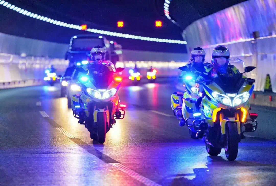交警鐵騎列隊(duì)夾道相迎