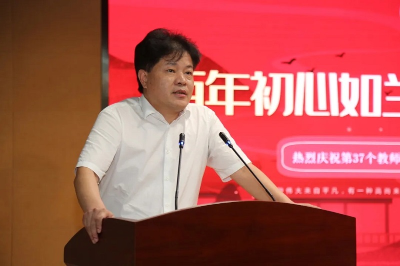 接著華國(guó)平董事長(zhǎng)上臺(tái),先深深鞠了一躬,表達(dá)對(duì)一線教師的敬重和感謝。感謝所有在教育的天地里默默守望的老師們。在講話中尤其是對(duì)奮戰(zhàn)在班主任崗位上的老師們由衷的敬意,表達(dá)了對(duì)老師們最誠(chéng)摯的祝福。接著他鼓勵(lì)大家做一名有家國(guó)情懷的人民教師。企業(yè)需要不斷優(yōu)化產(chǎn)業(yè),增強(qiáng)競(jìng)爭(zhēng)力,教育更需要每一位教育工作者勤于思考,提高課堂效率,因材施教,提升學(xué)校辦學(xué)品質(zhì)。華國(guó)平先生的發(fā)言誠(chéng)摯而充滿了力量,贏得了領(lǐng)導(dǎo)、老師們熱烈的掌聲。
